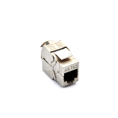Jack blindado MARCA ANCLA categoría 6A para parcheo a 180º diseñados para instalación en bases para Patch y puesto de trabajo (Face Plates) sistema de ponchado punch down, para asegurar una conexión permanente.