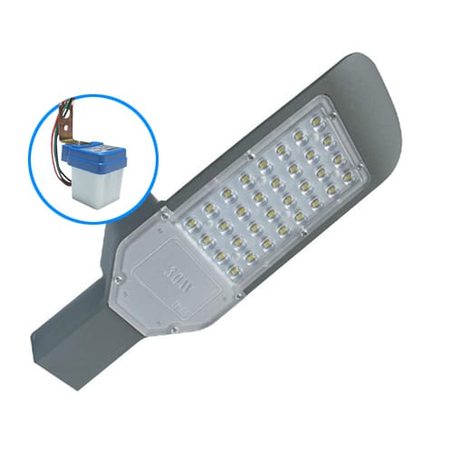 Potencia: 180W Tipo de bombilla: LED con fotocelda Iluminación eficiente para espacios exteriores Sensor de fotocelda para encendido automático al anochecer y apagado al amanecer Diseño compacto y versátil Consumo de energía moderado